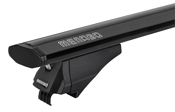 Täydellinen Menabo taakkateline integroituihin kattokiskoihin, musta, pituus 135 cm. Huom teline tulee kasaamattomana.