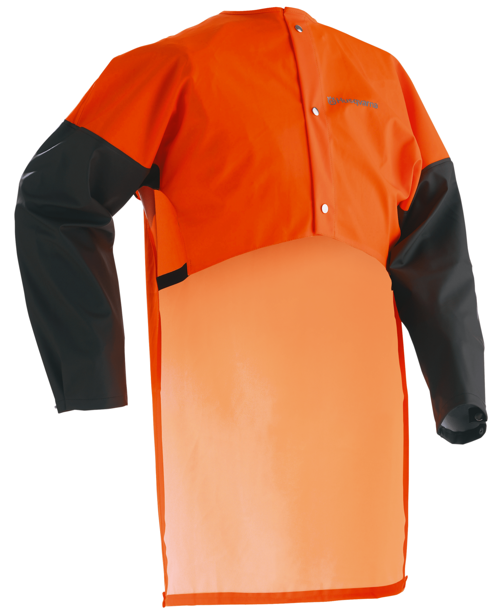 Frakkimallinen sadeviitta, jossa edessä säädettävä napitus ja pitkät, painonapeilla suljettavat hihat. Pitkässä selkäosassa on vesiura. Materiaali PU/PVC. Yksi koko.