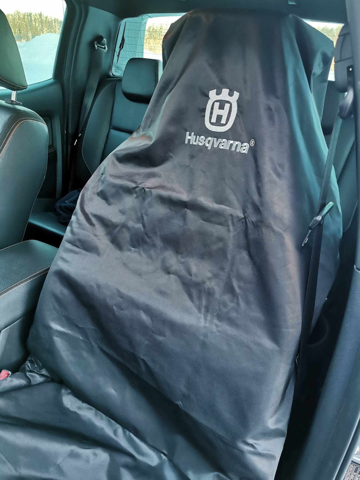 Husqvarna istuinsuoja, hyvä istuvuus, sopii isompaankin istuimeen. Kotimainen laatutuote.