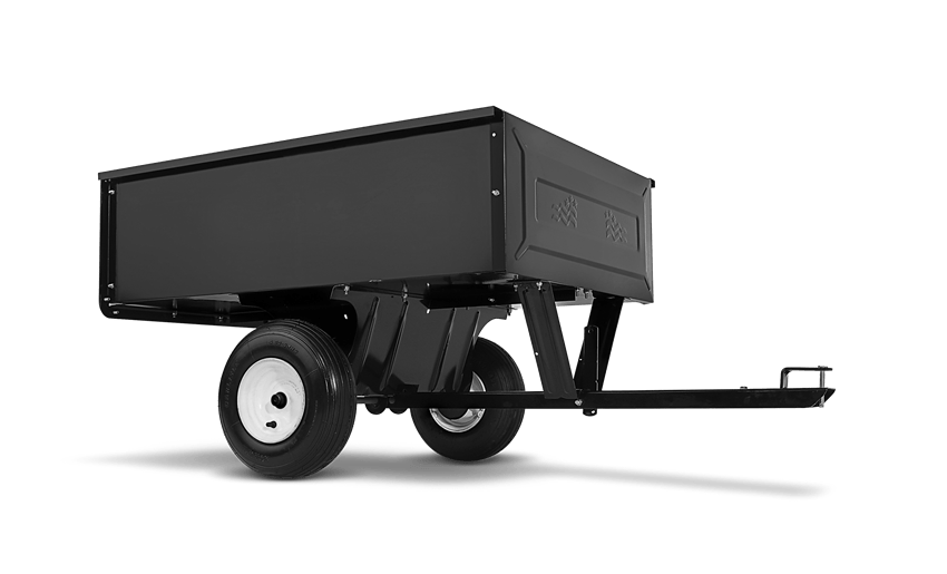 Husqvarna peräkärry, kipattava ja avattava laita. Paino 29 kg, maksimi lastauskapasiteetti 150 kg. Huom. Toimitetaan kasaamattomana