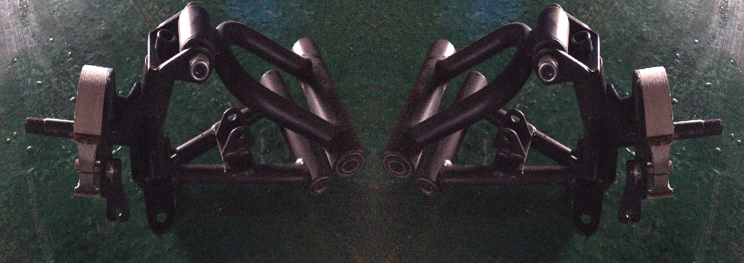 Sisältää etupyörän navan, ylätukivarren ja alatukivarren vasemmalle ja oikealle puolelle.Alkuperäisosa Kontio Motors Silverfox Fouriin